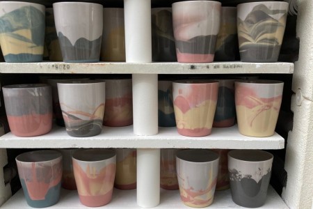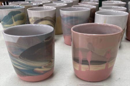 Ben je geïnspireerd door hun serviesgoed? Maak dan in de werkplaats van studioZAND je eigen nieuwe beker van porselein. Kleuren en gieten doe je zelf onder begeleiding van Erna Huppelschoten.Het afwerken, glazuren en bakken wordt in de weken daarna voor jou gedaan in studioZAND.